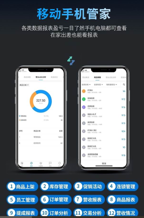 从业20多年的实体店,对收款机以及收款软件有迅速判断和解决问题的实践经验,订购收银系统后,免费上门安装调试,包教包会,不管是年轻人还是老年人都能迅速上机熟练操作,可用电脑或手机实时监控销售细节和销售状态,收款软件终生免费,无隐藏的额外收费项目、交易走势。全方位掌握店面信息。跨店消费、充值、积分,充分挖掘会员潜在的价值,可以设置分区域共享,也可以设置全国共享,可以让会员储值在门店通用,月底总部对账给门店,增加会员卡价值的同时,还能为总部增加现金流。无纸化调货配货,通过菜品消耗与原材料挂钩,预知库存消耗,从而及时订货。零售可根据库存信息实现门店商品自由调货,全程自动化,总部做活动,分店秒同步发起统一的营销活动,只需在云后台设置,并同步到门店就能使用,并且一键送到会员和客户手机,活动业绩、利润、折扣统一汇总,无需再安排人层层通知和统计。门店一键复制,商品信息、会员资料、供货商信息等,全部迁移到新店,无需重新录入资料和设置,真正实现1分钟开新店!